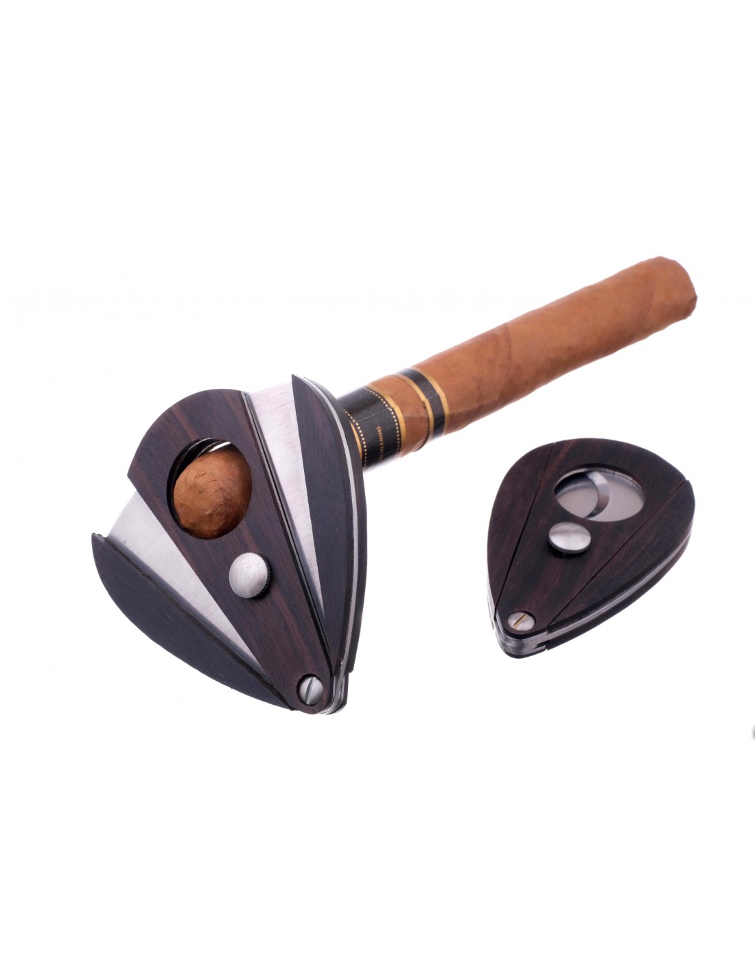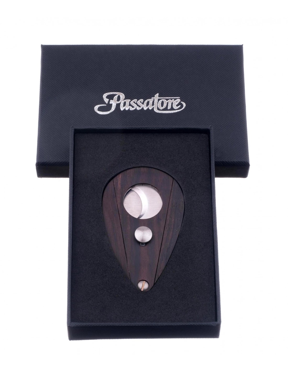 Сигарная гильотина от известного немецкого табачного бренда Passatore. Проста в исполнении, но при этом очень удобна и эффективна в использовании. Изготовлена из нержавеющей стали с отделкой из натурального дерева по принципу гильотин Xikar. Для сигар диаметром до 21 мм.