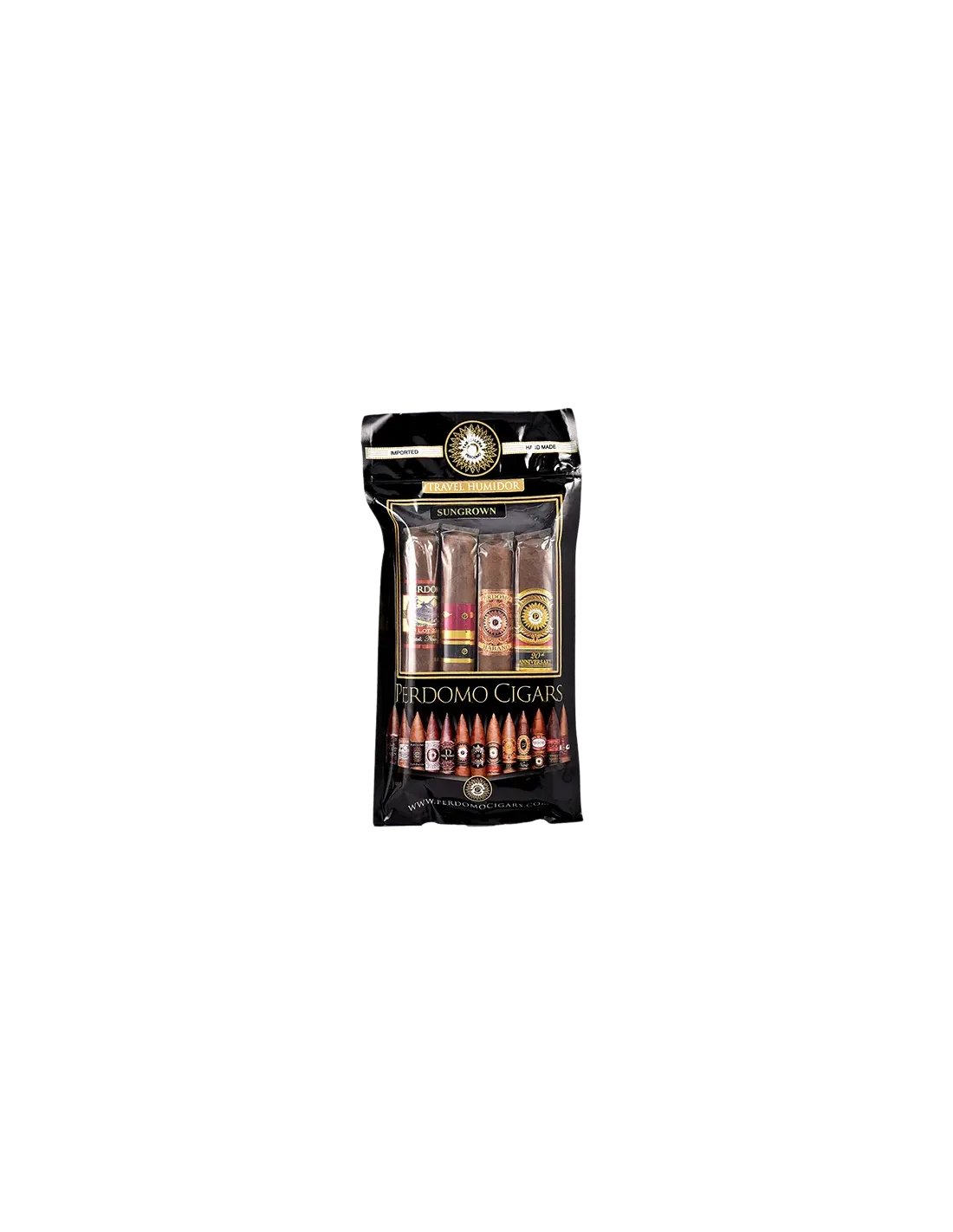 Набор сигар Perdomo - PerНабор сигар Perdomo Humidified Bags (Travel Humidor) - Epicure Sun Grown включает в себя 4 сигары, упакованные в увлажняющий пакет на молнии zip-lock, позволяющий сохранить их в оптимальном состоянии: