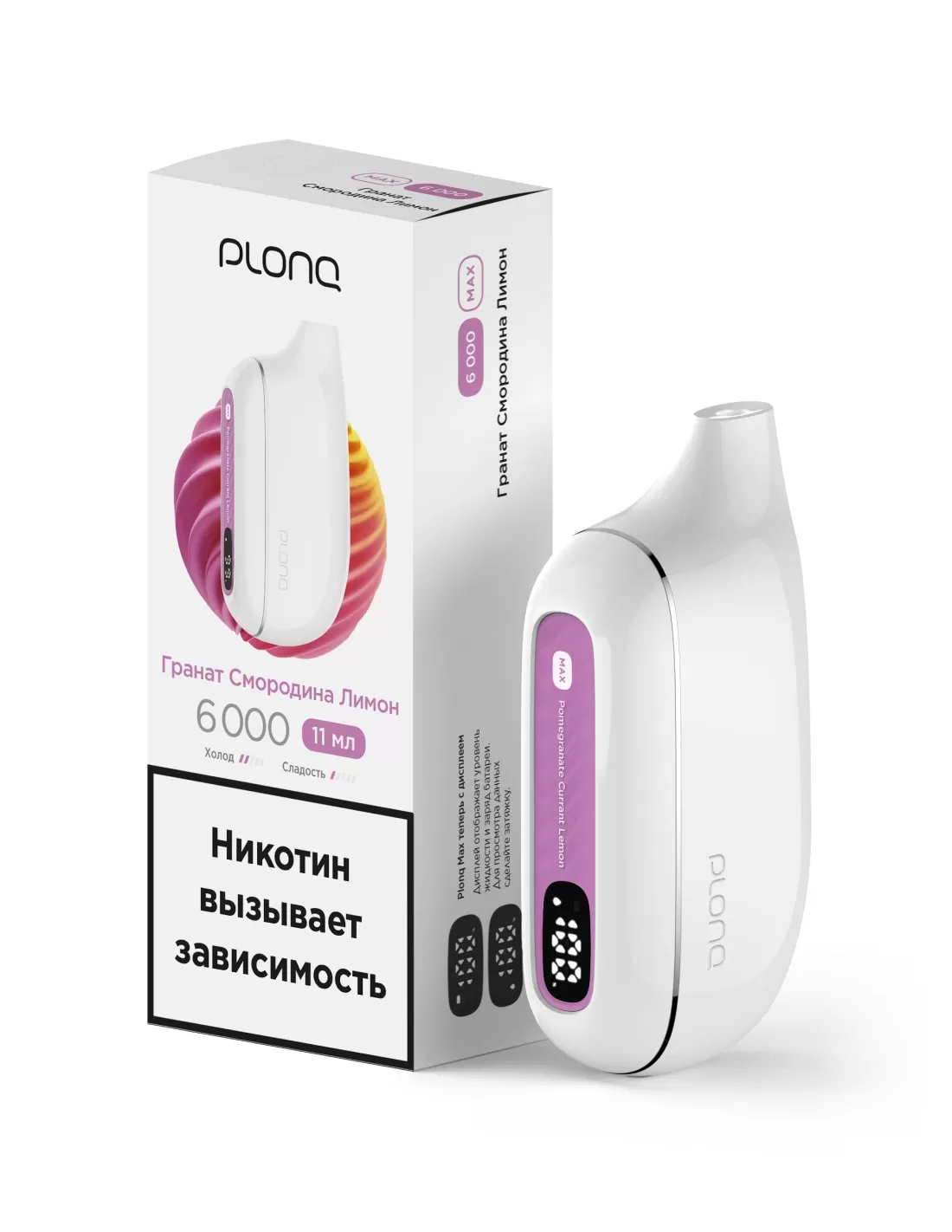 Электронная сигарета Plonq Max Гранат Смородина Лимон, 6000 затяжек