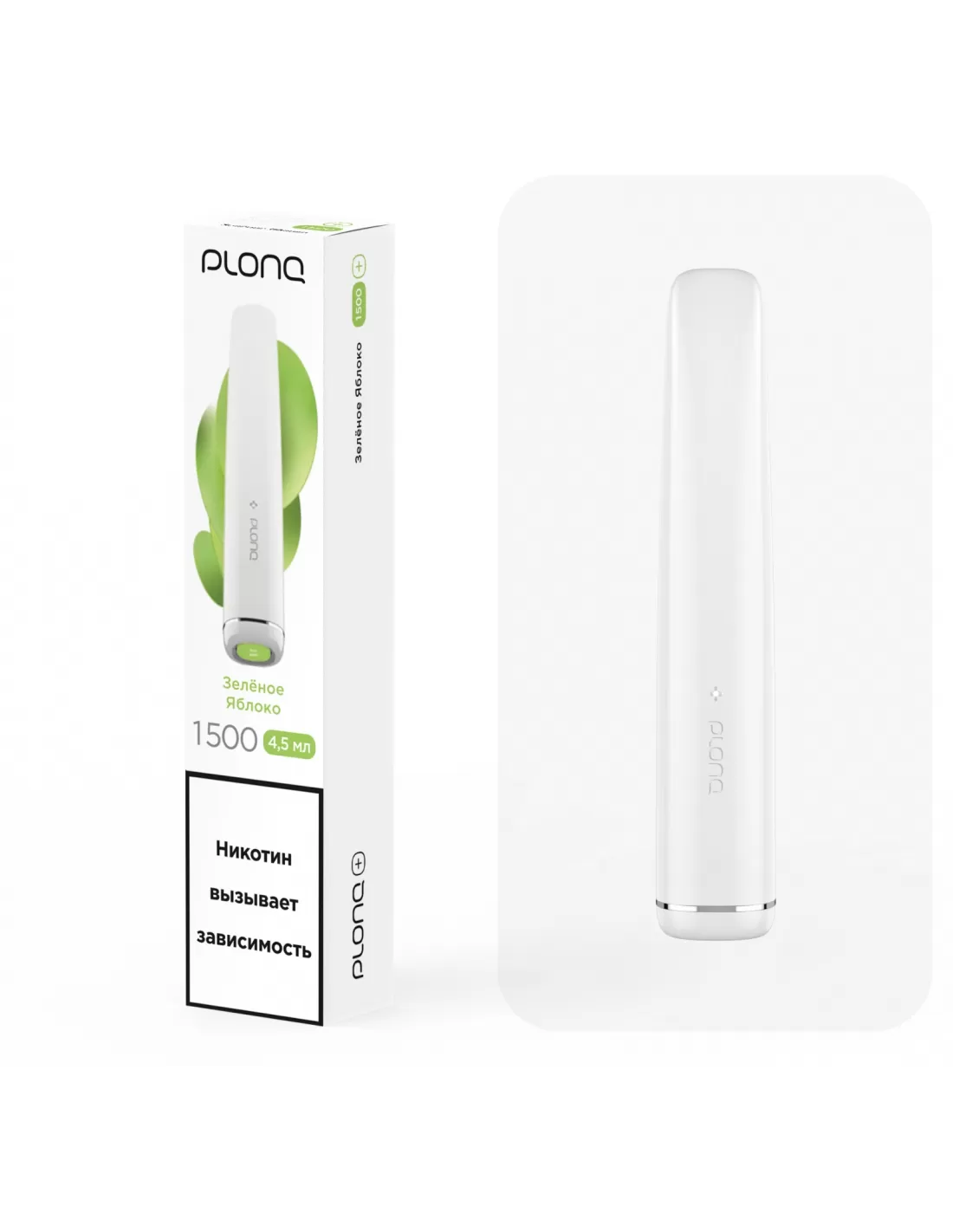 Электронная сигарета Plonq Plus Зеленое яблоко, 1500 затяжек