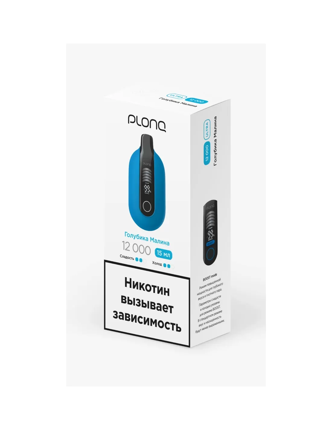 Характеристики: 12 000 затяжек; вкус — голубика и малина; ёмкость аккумулятора — 600 мА·ч.