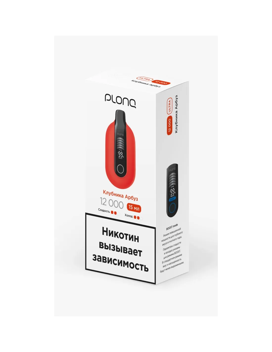 Характеристики: 12 000 затяжек; вкус — клубника с арбузом; аккумулятор — повышенной емкости для длительного использования без подзарядки.